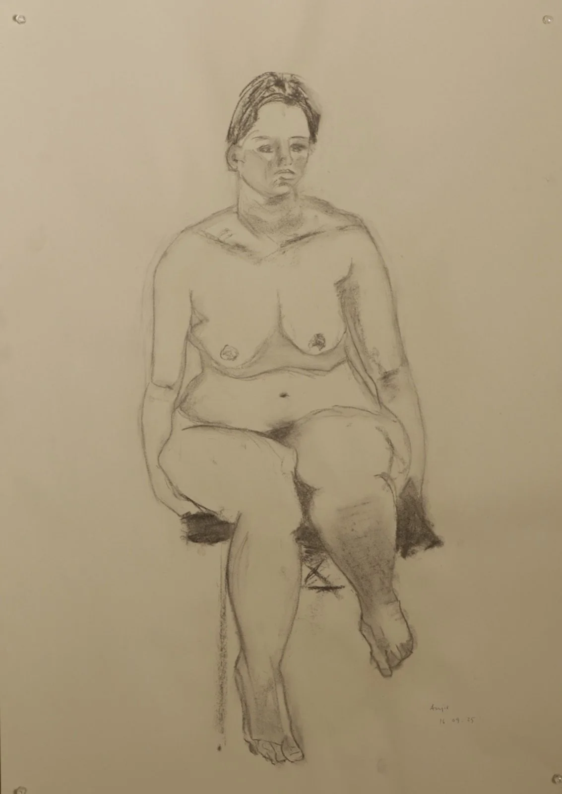 Anjie sitting Charcoal on sugar paper 59 x 84cms