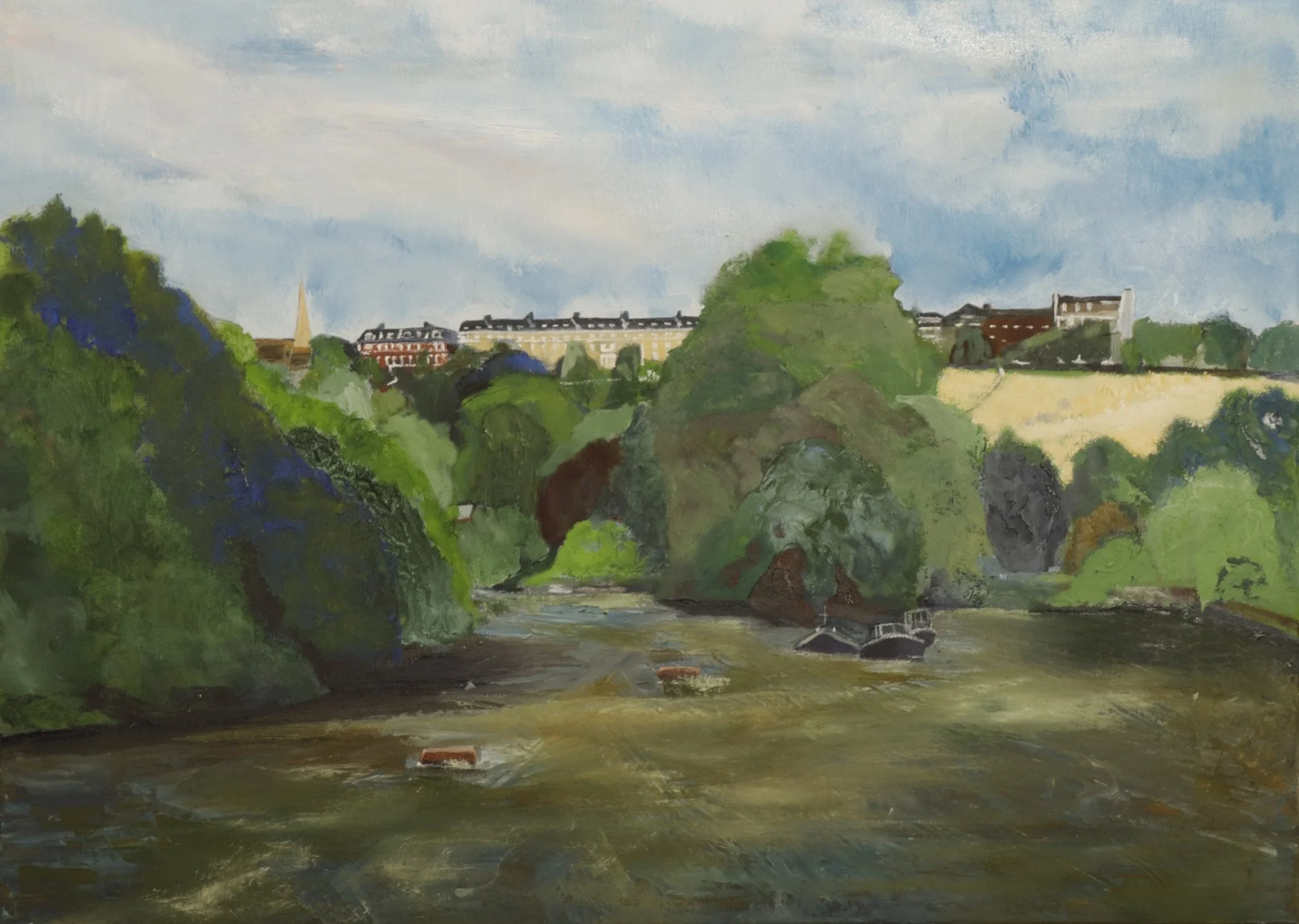 Turner’s viewpoint? Glovers Island and Richmond Hill from upstream Oil on canvas board 45 x 35 cms